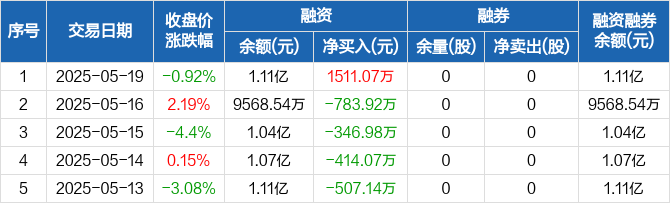 邵阳液压:融资净买入1511.07万元,融资余额1.11亿元(05-19)