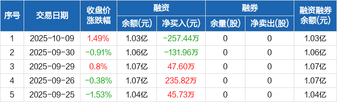 邵阳液压:融资净偿还257.44万元,融资余额1.03亿元(10-09)