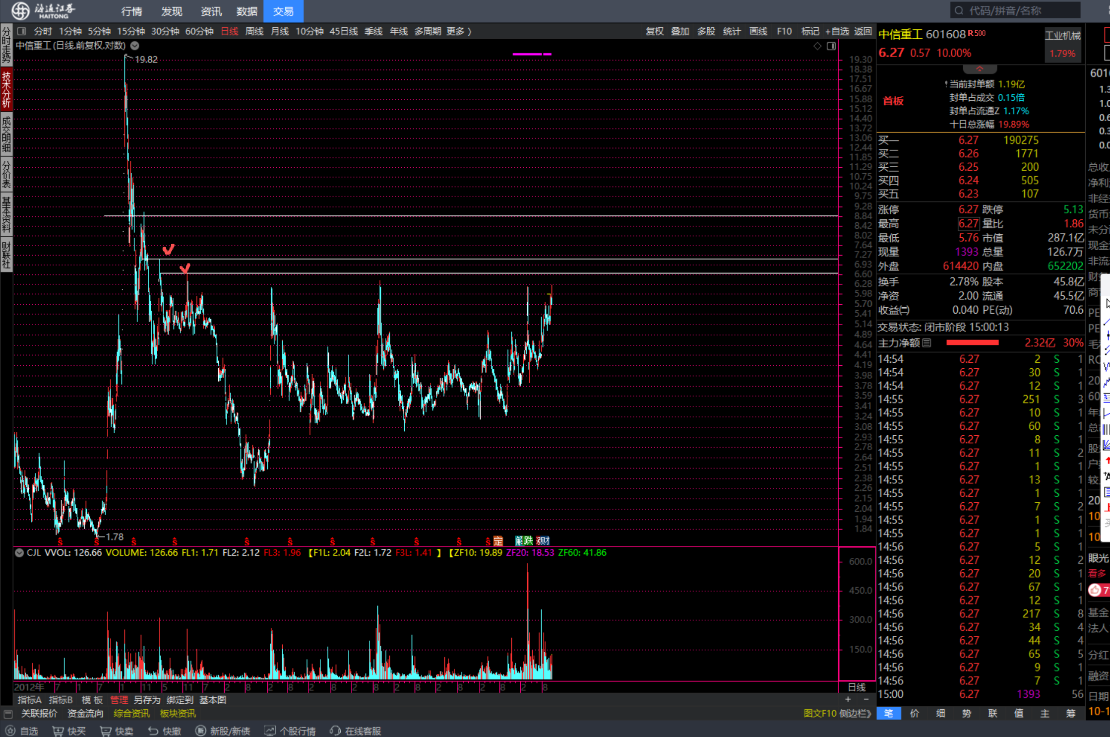 3. 中信重工:有共识,有强度。 遗憾:上面有两级阻滞很近(当然也有可能直接过去)