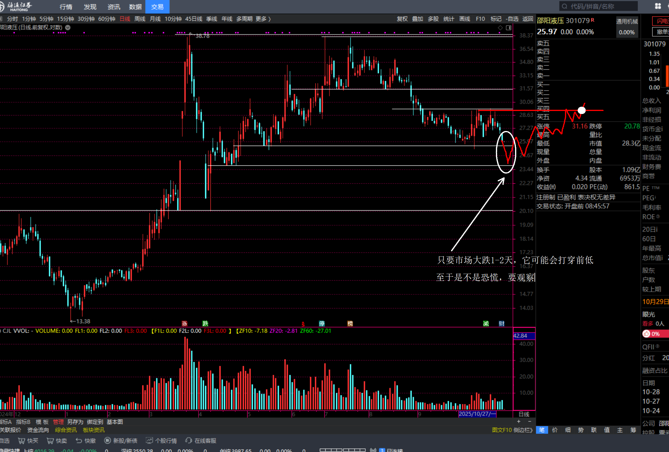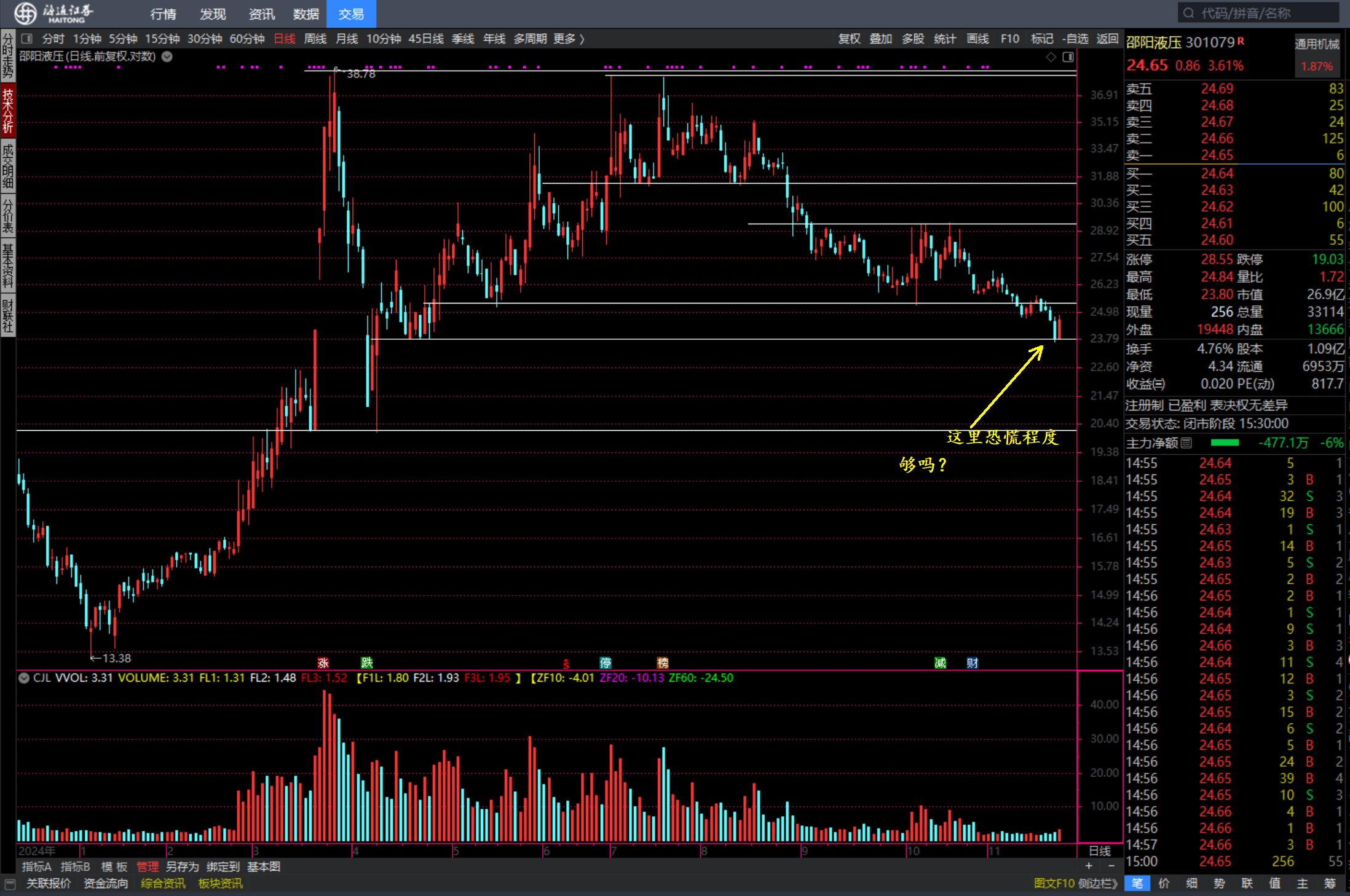 为什么说是可能,大盘大跌2%时,其实邵阳顺势打-10%,完全可以判断是恐慌盘。
