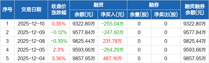 邵阳液压:融资净偿还255.04万元,融资余额9322.8万元(12-10)
