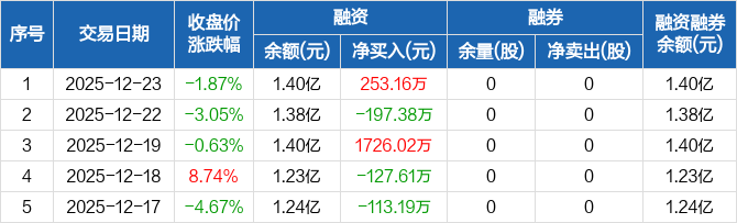 邵阳液压:融资净买入253.16万元,融资余额1.4亿元(12-23)