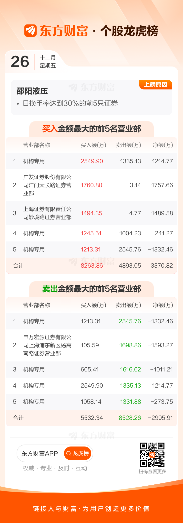 邵阳液压(301079)龙虎榜数据(12-26)