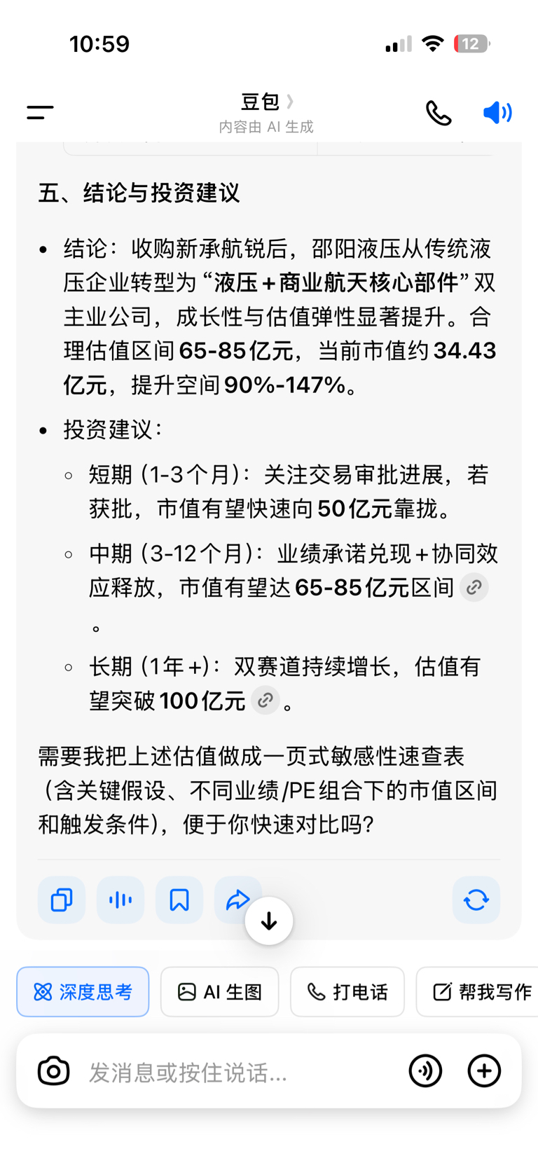 $邵阳液压(SZ301079)$ 这是收购后的理性估值,在二级市场热度的影响下,非理性的估值应当再放大3倍左右,也就是300亿市值左右,当然前提是被多个资金青睐,如果热度没这么强,我猜算是150亿市值左右