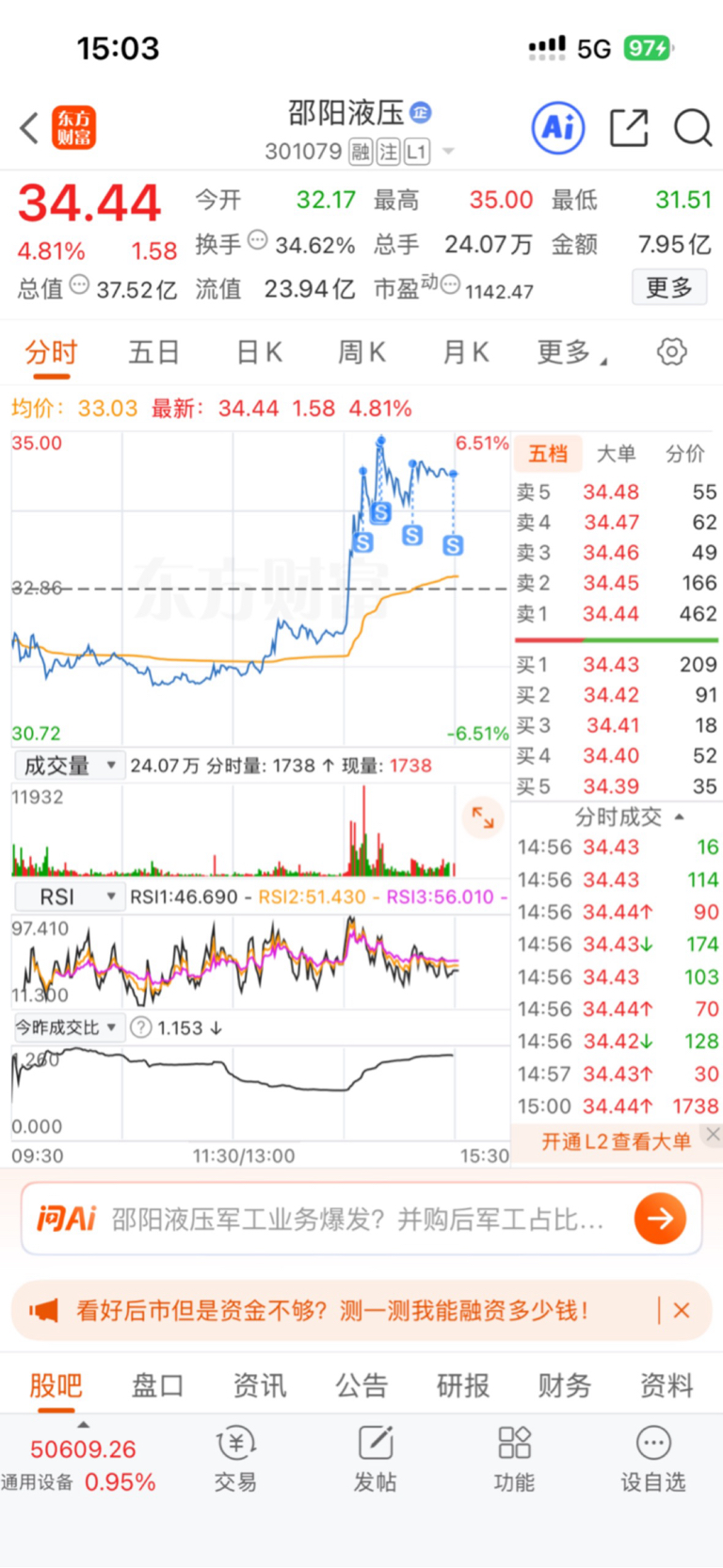 $邵阳液压(SZ301079)$ 走咯谢谢可爱的主力