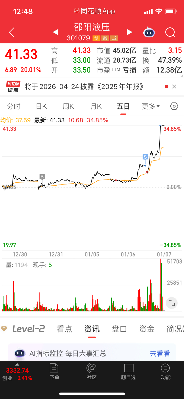 $邵阳液压(SZ301079)$ 希望再来个三连板