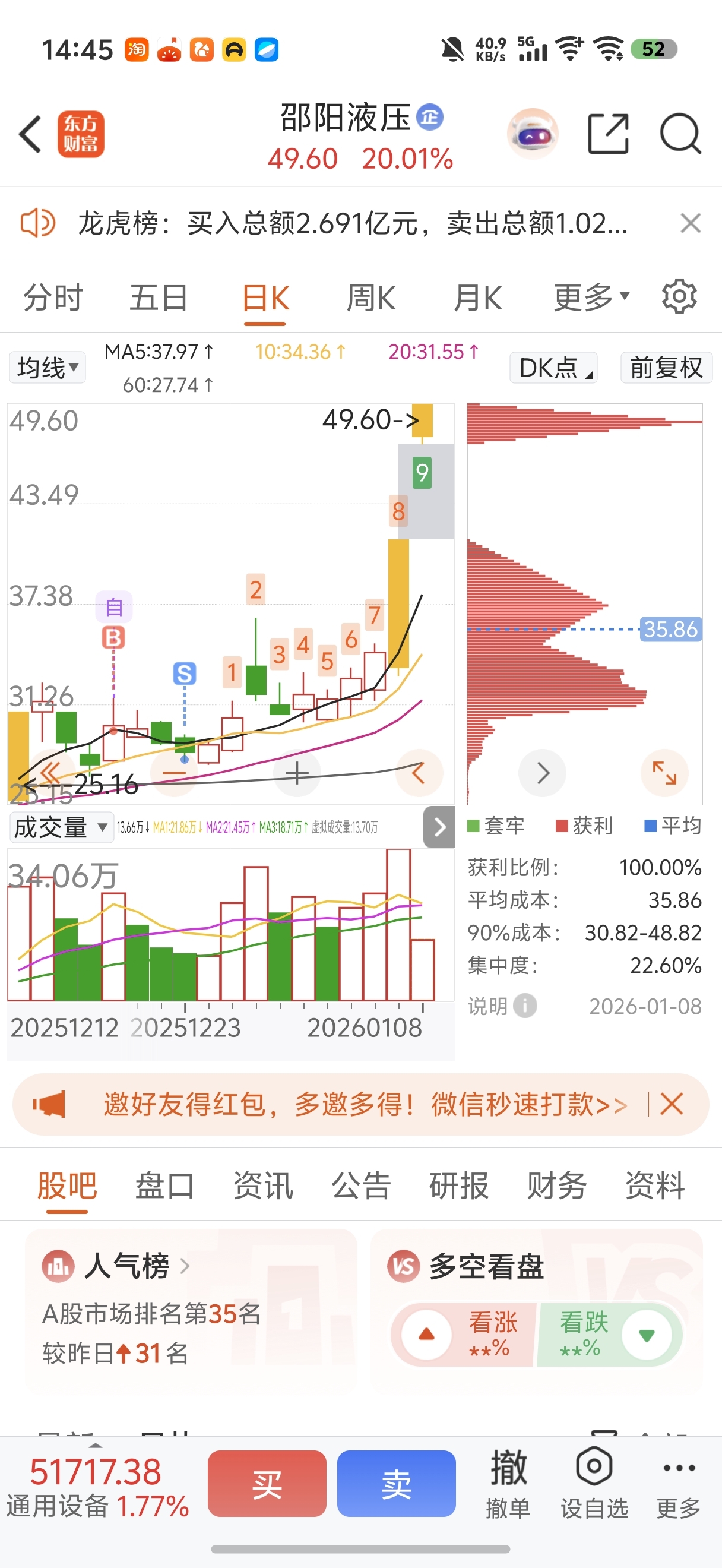 $邵阳液压(SZ301079)$ 这么多票,坚持就一直绿,割肉就飞涨