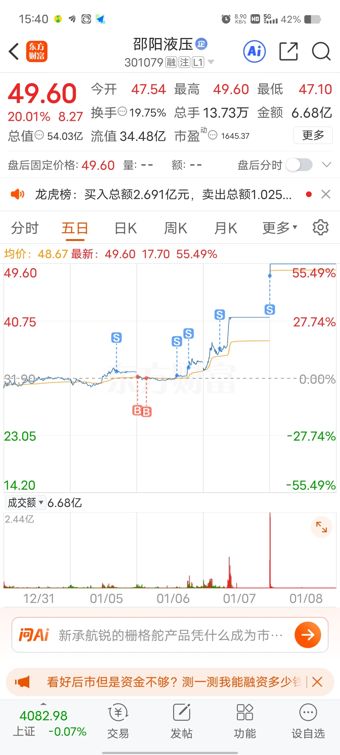 $邵阳液压(SZ301079)$ 想死的心都有了,全卖飞了。