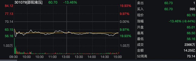 1月13日,邵阳液压股价重挫,收盘大跌13.46%,全天股价振幅高达14.74%。在此之前的几个交易日,邵阳液压股价走势强劲,1月12日邵阳液压股价最高一度达70.14元,较2025年底的股价涨幅超过100%,成为2026年以来首批翻倍股之一。