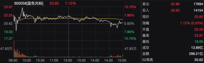 蓝色光标也是2026年以来的首批翻倍股,今日盘中,其最高价至23.87元/股,较2025年底股价翻倍,该股亦是近期市场龙头股之一。1月13日蓝色光标股价波动明显加大,全天振幅高达25.27%,成交额接近300亿元,换手率高达39.92%。