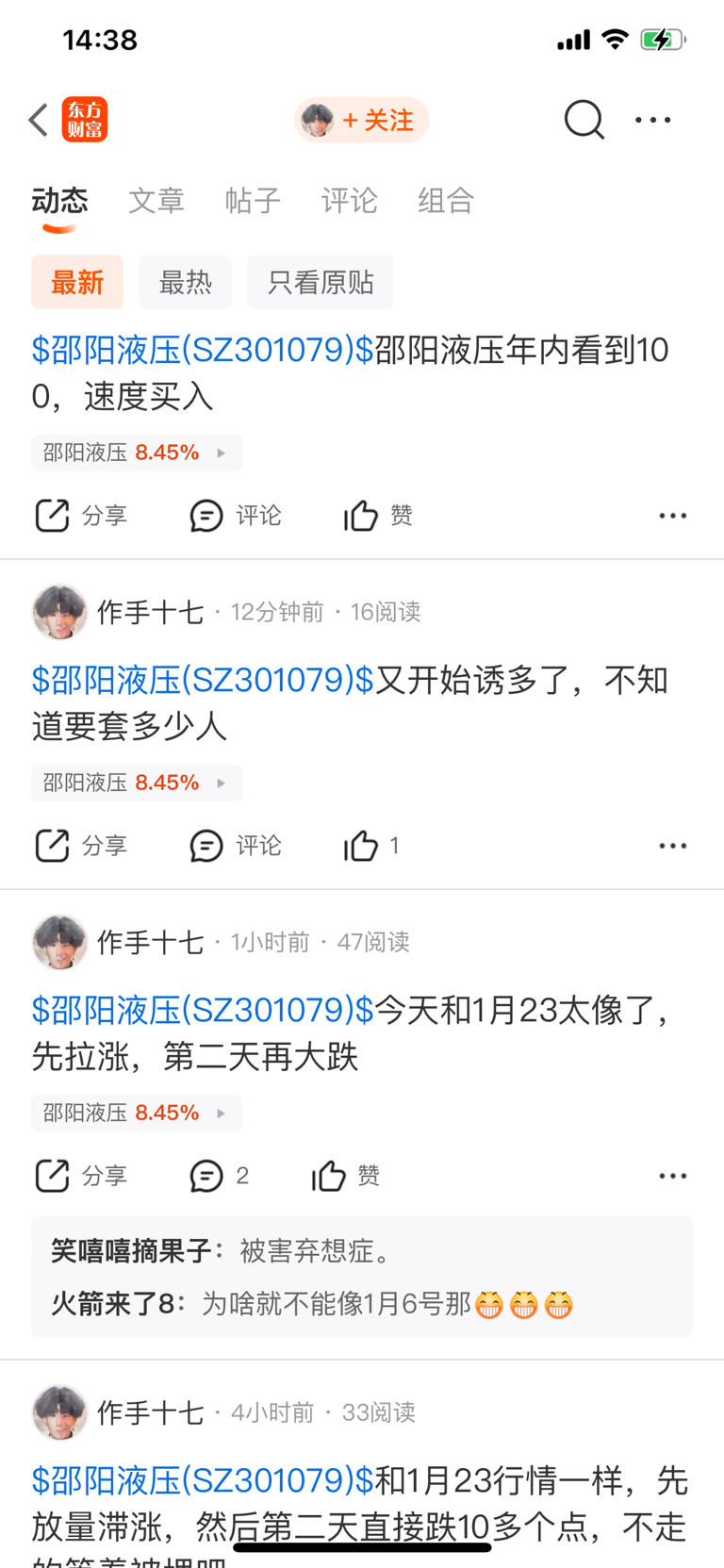温馨提示: 1.根据《证券法》规定,禁止编造、传播虚假信息或者误导性信息,扰乱证券市场;2.用户在本社区发表的所有资料、言论等仅代表个人观点,与本网站立场无关,不对您构成任何投资建议。用户应基于自己的独立判断,自行决定证券投资并承担相应风险。《东方财富社区管理规定》