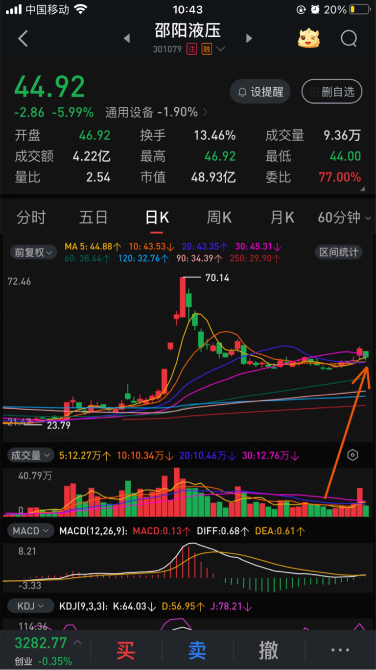 $邵阳液压(SZ301079)$ $中光防雷(SZ300414)$ $和晶科技(SZ300279)$ 4400只跌的,5000来只股,90%下跌率,回调下很正常,趋势没破,支撑位没破。等市场企稳,还时强势股。玩股不能太心急,特别时市场震荡加大的时候。只有极少数避险板块时上涨的。