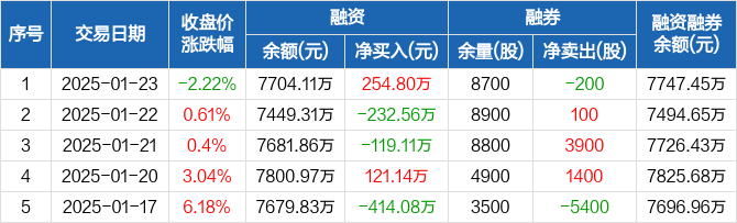百普赛斯:融资净买入254.8万元,融资余额7704.11万元(01-23)