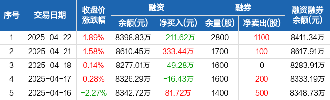 百普赛斯:融资净偿还211.62万元,融资余额8398.83万元(04-22)