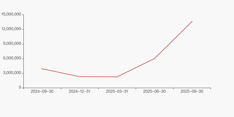 百普赛斯2025年10月29日在三季度报告中披露,截至2025年9月30日公司股东户数为1.06万户,较上期(2025年6月30日)减少1145户,减幅为9.75%。