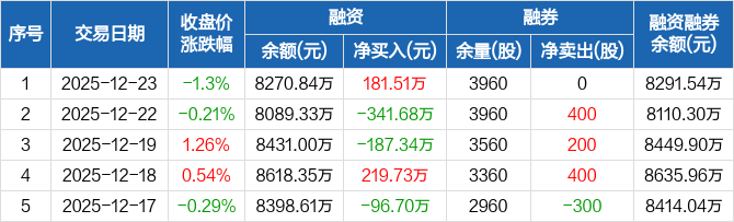 百普赛斯:融资净买入181.51万元,融资余额8270.84万元(12-23)