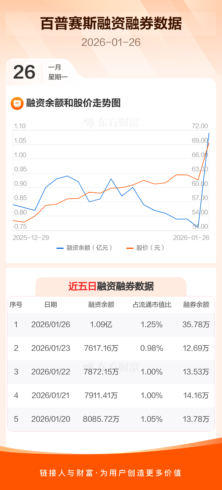 交易所最新数据显示,百普赛斯于2026年1月26日获融资买入5497.28万元,融资偿还2218.05万元,当日融资净买入3279.23万元。目前,该股融资余额1.09亿,占流通市值比例为1.25%。