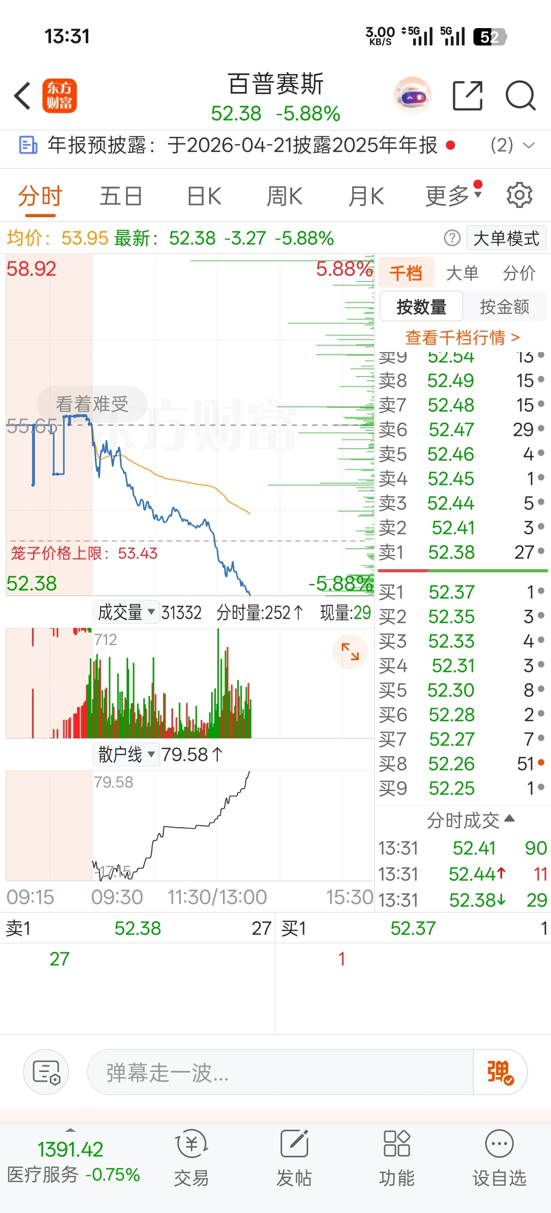 $百普赛斯(SZ301080)$ 这个散户线,看着都吓人,不停加仓哇