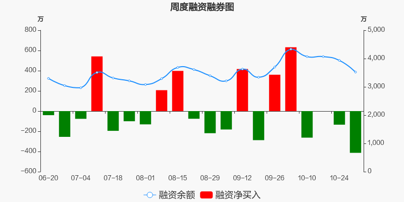 严牌股份本周(2025/10/27-2025/10/31)累计跌幅达2.55%,截至10月31日最新股价报收10.70元。从增量上来看,10月27日至10月30日融资买入交易规模1616.69万元,融资偿还规模2029.79万元,期内融资净偿还413.11万元。从存量上来看,截止11月2日,严牌股份融资融券余额3522.26万元,其中融资余额规模3522.16万元,融券余额规模1054元。