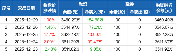 严牌股份:融资净偿还84.68万元,融资余额3460.29万元(12-29)