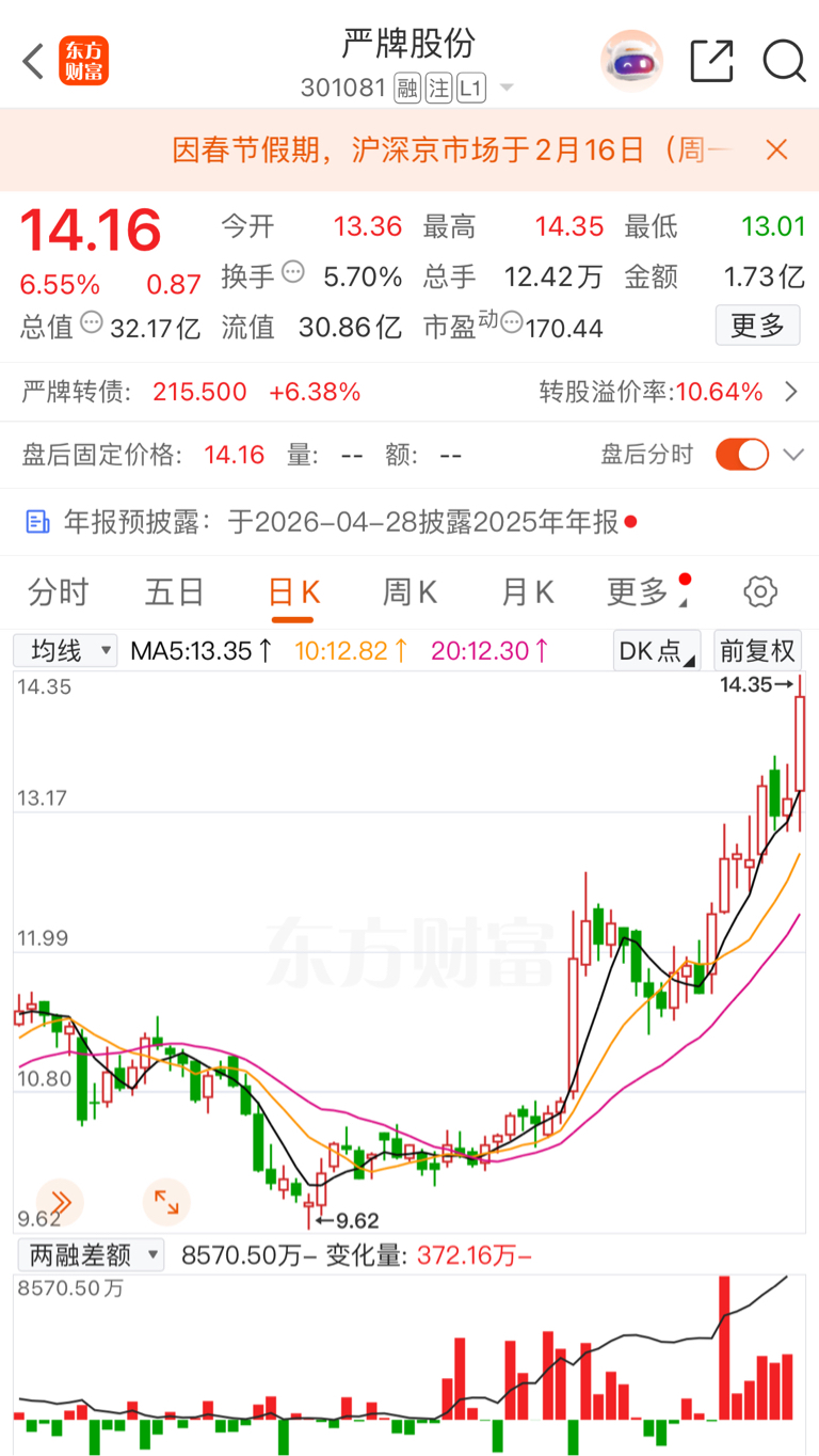 $严牌股份(SZ301081)$ 金姐给的趋势股就没失败过,安心持有都基本上有肉吃