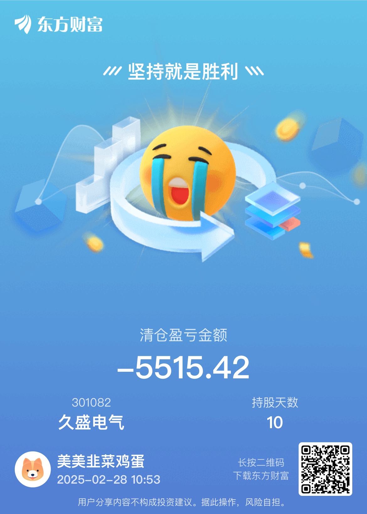 温馨提示: 1.根据《证券法》规定,禁止编造、传播虚假信息或者误导性信息,扰乱证券市场;2.用户在本社区发表的所有资料、言论等仅代表个人观点,与本网站立场无关,不对您构成任何投资建议。用户应基于自己的独立判断,自行决定证券投资并承担相应风险。《东方财富社区管理规定》
