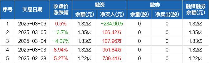 久盛电气:融资净偿还234.9万元,融资余额1.32亿元(03-06)