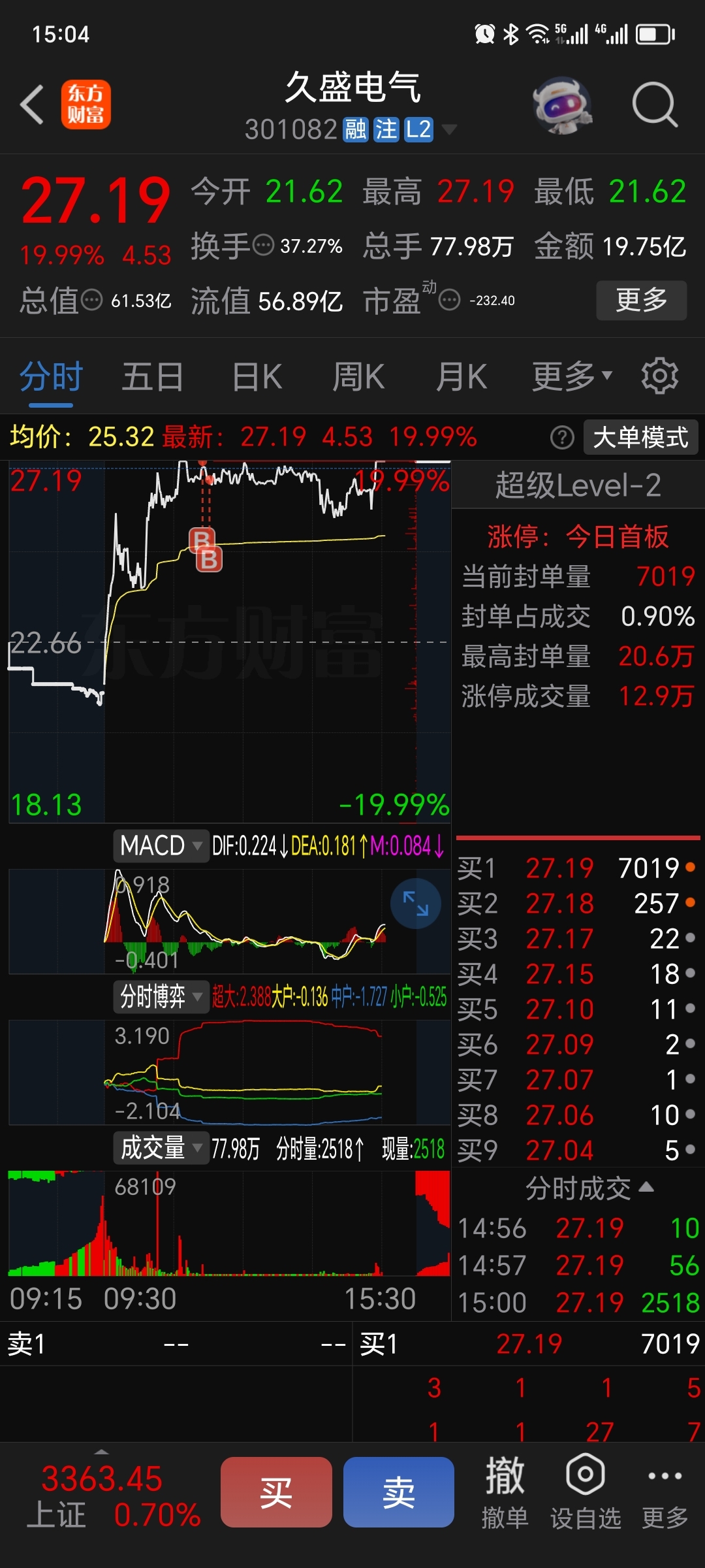 $久盛电气(SZ301082)$ #收盘点评# #炒股日记# 上板早,智能单,回封买。板真烂,必经路,愿赌服输!