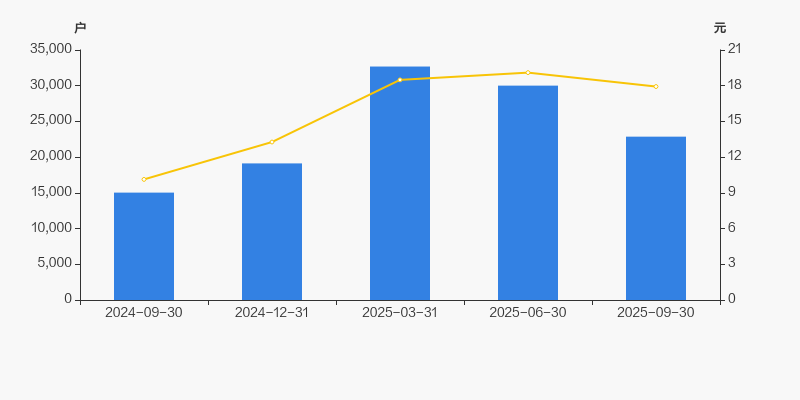 2024年9月30日至今,公司股东户数显著大幅增长,区间涨幅达52.11%。2024年9月30日至2025年9月30日区间股价上涨76.98%。