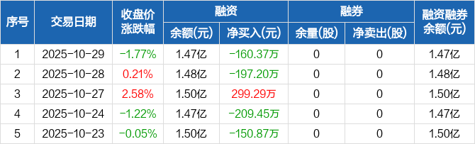 久盛电气:融资净偿还160.37万元,融资余额1.47亿元(10-29)