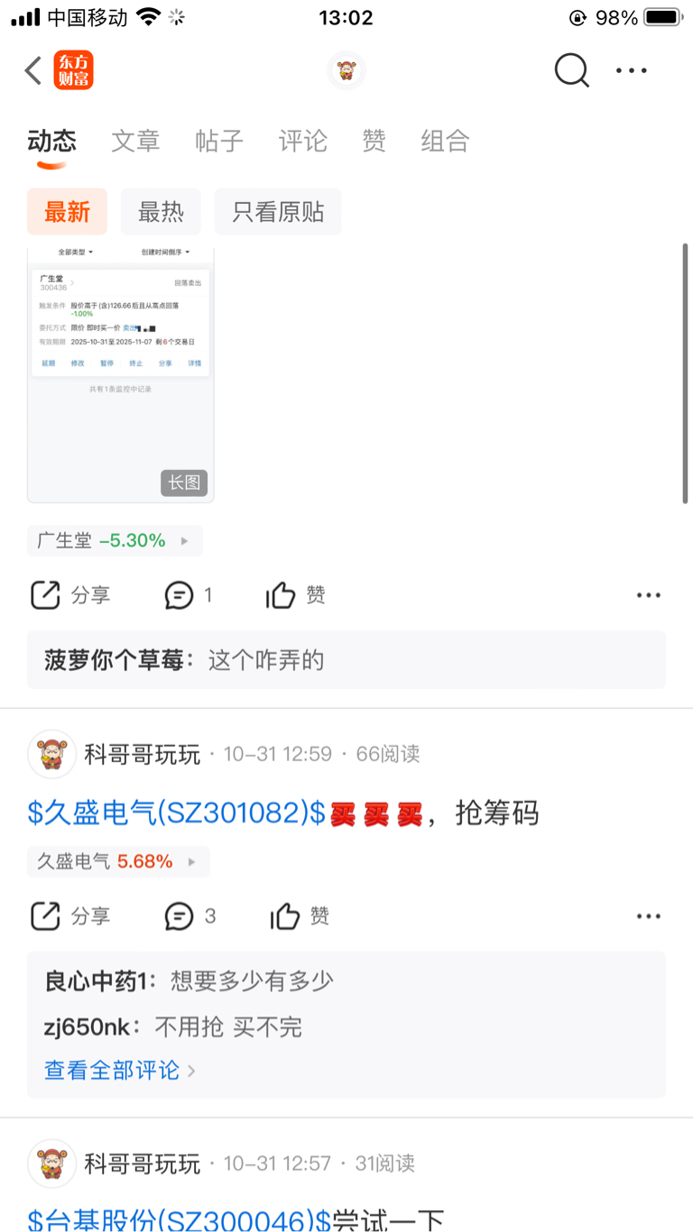 温馨提示: 1.根据《证券法》规定,禁止编造、传播虚假信息或者误导性信息,扰乱证券市场;2.用户在本社区发表的所有资料、言论等仅代表个人观点,与本网站立场无关,不对您构成任何投资建议。用户应基于自己的独立判断,自行决定证券投资并承担相应风险。《东方财富社区管理规定》