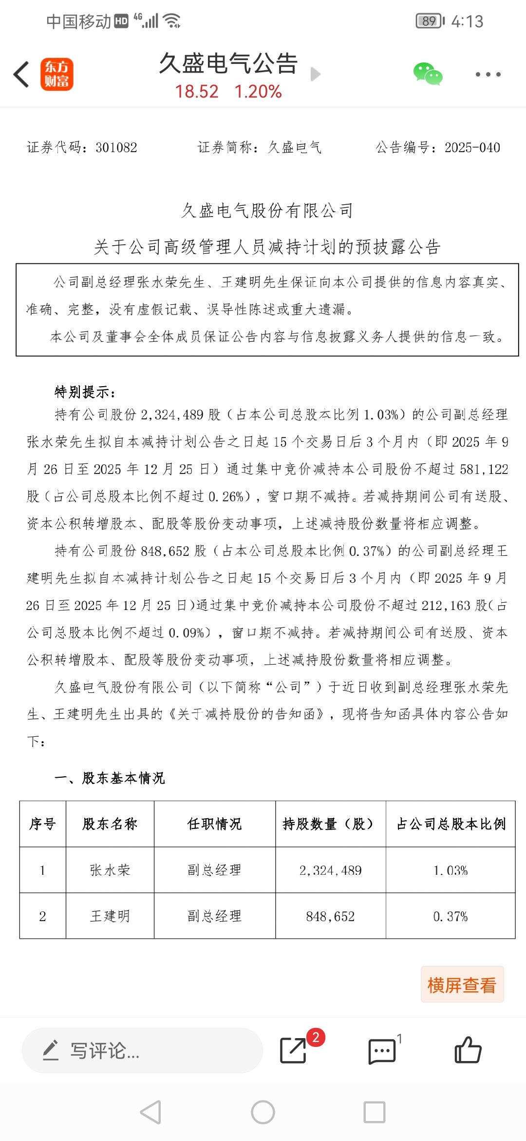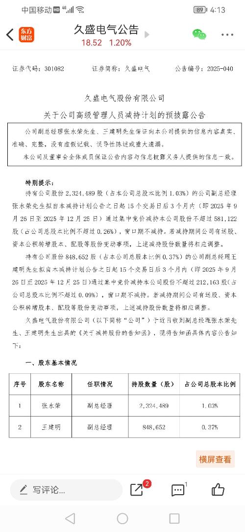$久盛电气(SZ301082)$  高管减持还没完成,不得涨。继续等!