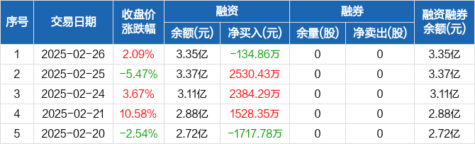 亚康股份:融资净偿还134.86万元,融资余额3.35亿元(02-26)