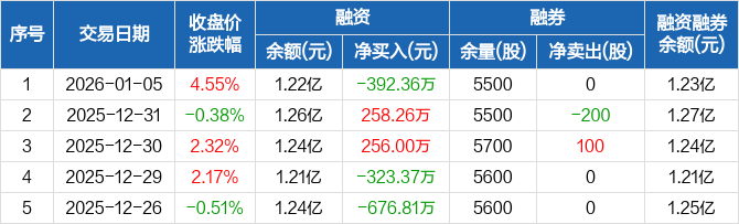 亚康股份:融资净偿还392.36万元,融资余额1.22亿元(01-05)