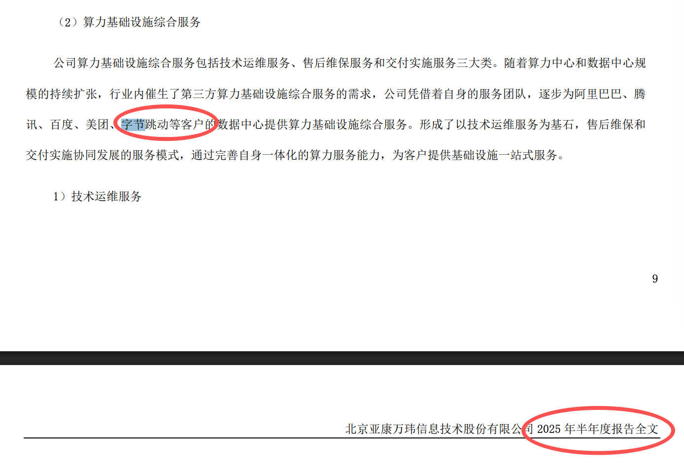亚康股份2025年半年度报告里面明确,不只为字节跳动提供运维,也为字节跳动提供算
