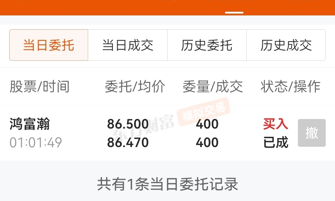 $鸿富瀚(SZ301086)$ 买不了这个只能自己模拟盘买,昨天看走势不错果断介入