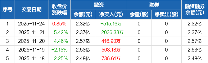 鸿富瀚:融资净偿还515.16万元,融资余额2.32亿元(11-24)