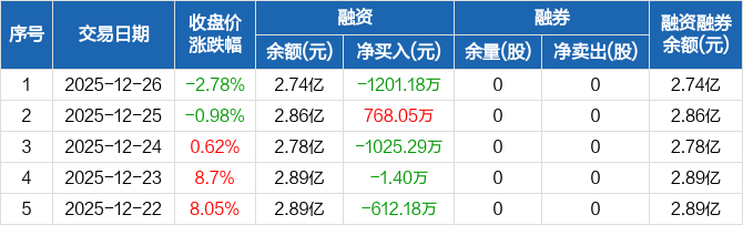 鸿富瀚:融资净偿还1201.18万元,融资余额2.74亿元(12-26)