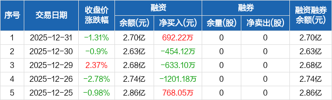 鸿富瀚:融资净买入692.22万元,融资余额2.7亿元(12-31)