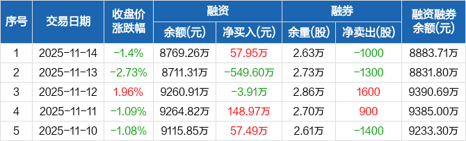 可孚医疗:融资净买入57.95万元,融资余额8769.26万元(11-14)