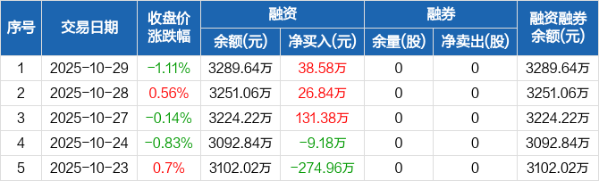 戎美股份:连续3日融资净买入累计196.8万元(10-29)
