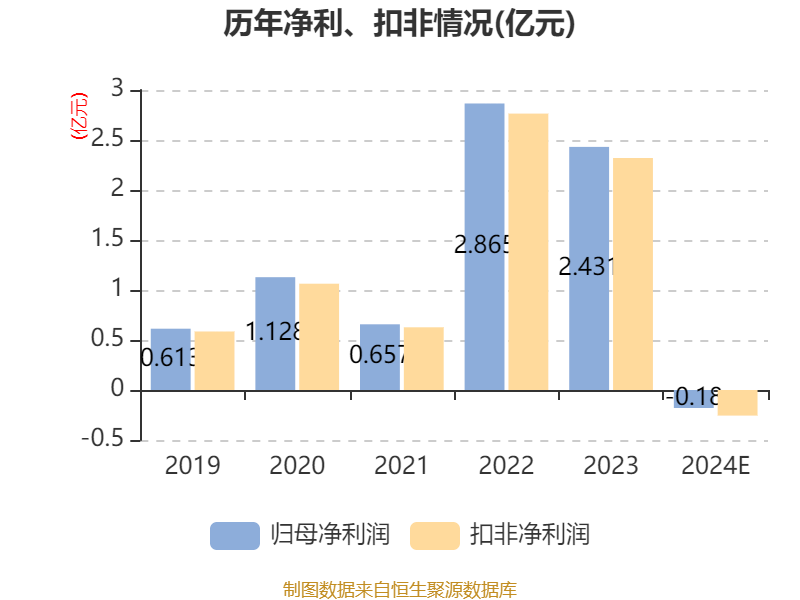 中证智能财讯拓新药业(301089)1月21日晚间披露2024年度业绩预告,预计2024年归母净利润亏损1500万元至2100万元,上年同期盈利2.43亿元;扣非净利润亏损2260万元至2860万元,上年同期盈利2.32亿元。以1月21日收盘价计算,拓新药业目前市盈率(TTM)约为-163.91倍至-229.47倍,市净率(LF)约2.19倍,市销率(TTM)约8.29倍。