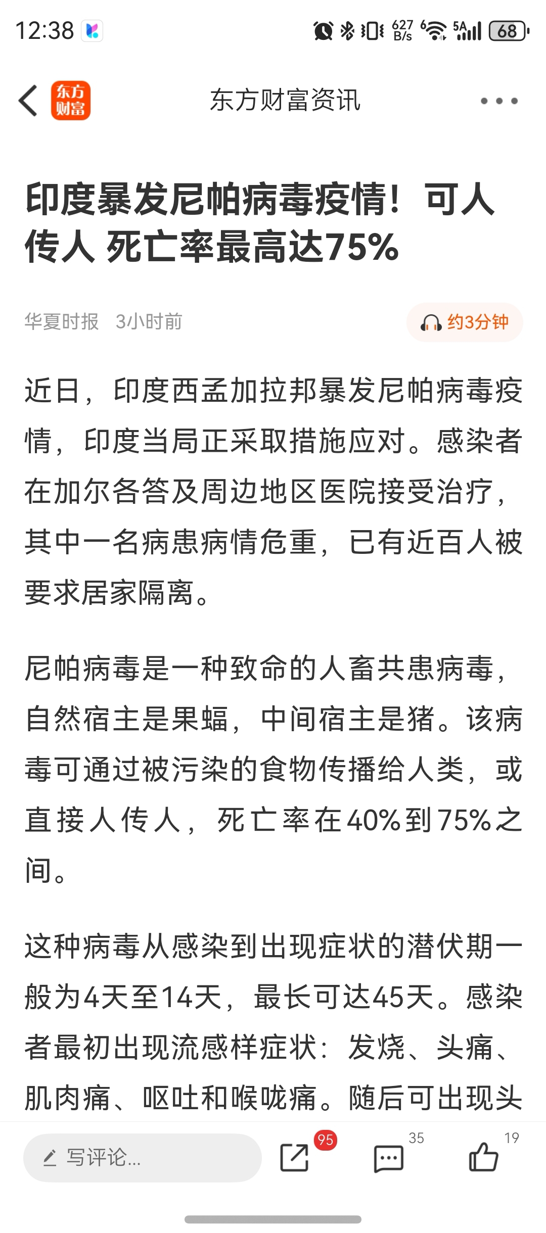 $拓新药业(SZ301089)$ 印度爆发尼怕病毒