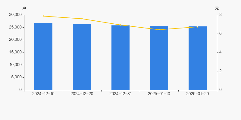 截至2025年1月20日,公司最新总股本为14.86亿股,其中流通股本为6.25亿股。户均持有流通股数量由上期的2.45万股上升至2.46万股,户均流通市值16.57万元。