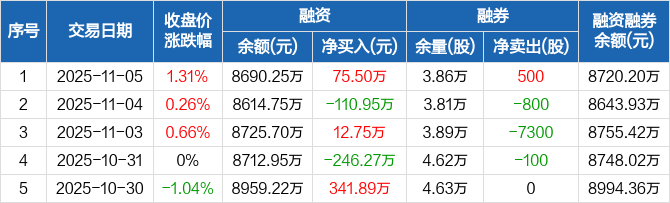 华润材料:融资净买入75.5万元,融资余额8690.25万元(11-05)