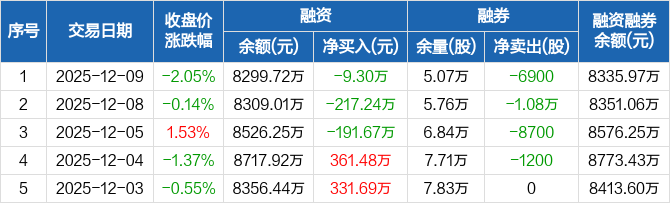 华润材料:连续3日融资净偿还累计418.2万元(12-09)