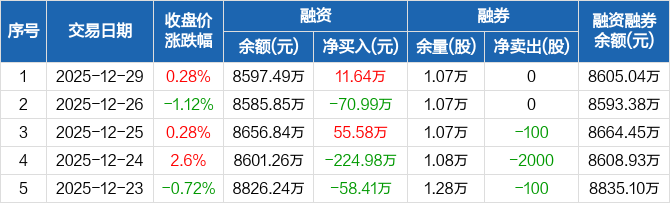 华润材料:融资净买入11.64万元,融资余额8597.49万元(12-29)