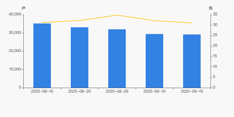 2025年8月10日至今,公司股东户数显著下降,区间跌幅为17.04%。2025年8月10日至2025年9月19日区间股价下降0.74%。