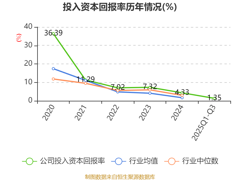 盈利能力方面, 2025年前三季度公司加权平均净资产收益率为1.83%,同比下降0.79个百分点。公司2025年前三季度投入资本回报率为1.35%,较上年同期下降0.41个百分点。