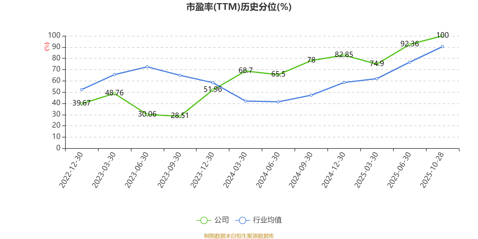 市盈率、市净率为负时,不显示当期分位数,会导致折线图中断。